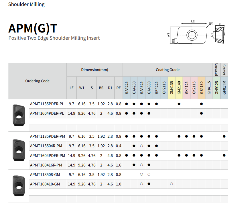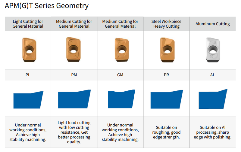 Chiều sâu cắt lớn và lực hướng tâm thấp, dùng cho phay vai, phay mặt, phay rãnh.