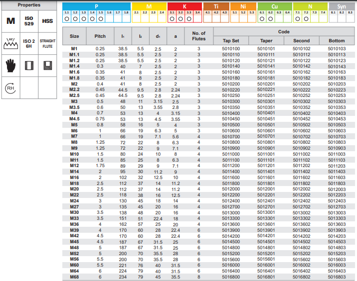 * Kích thước ren: Size M1 - size M68